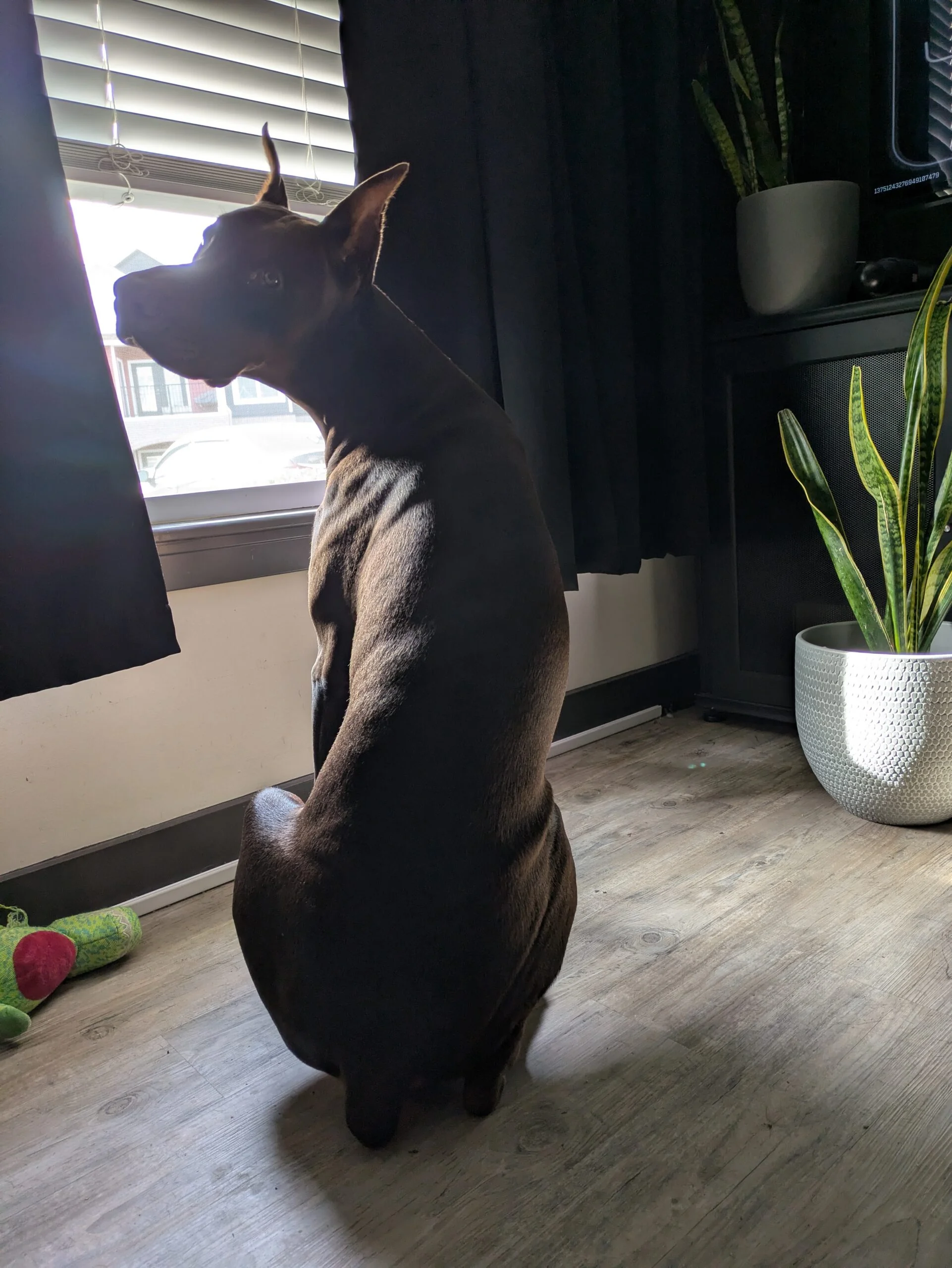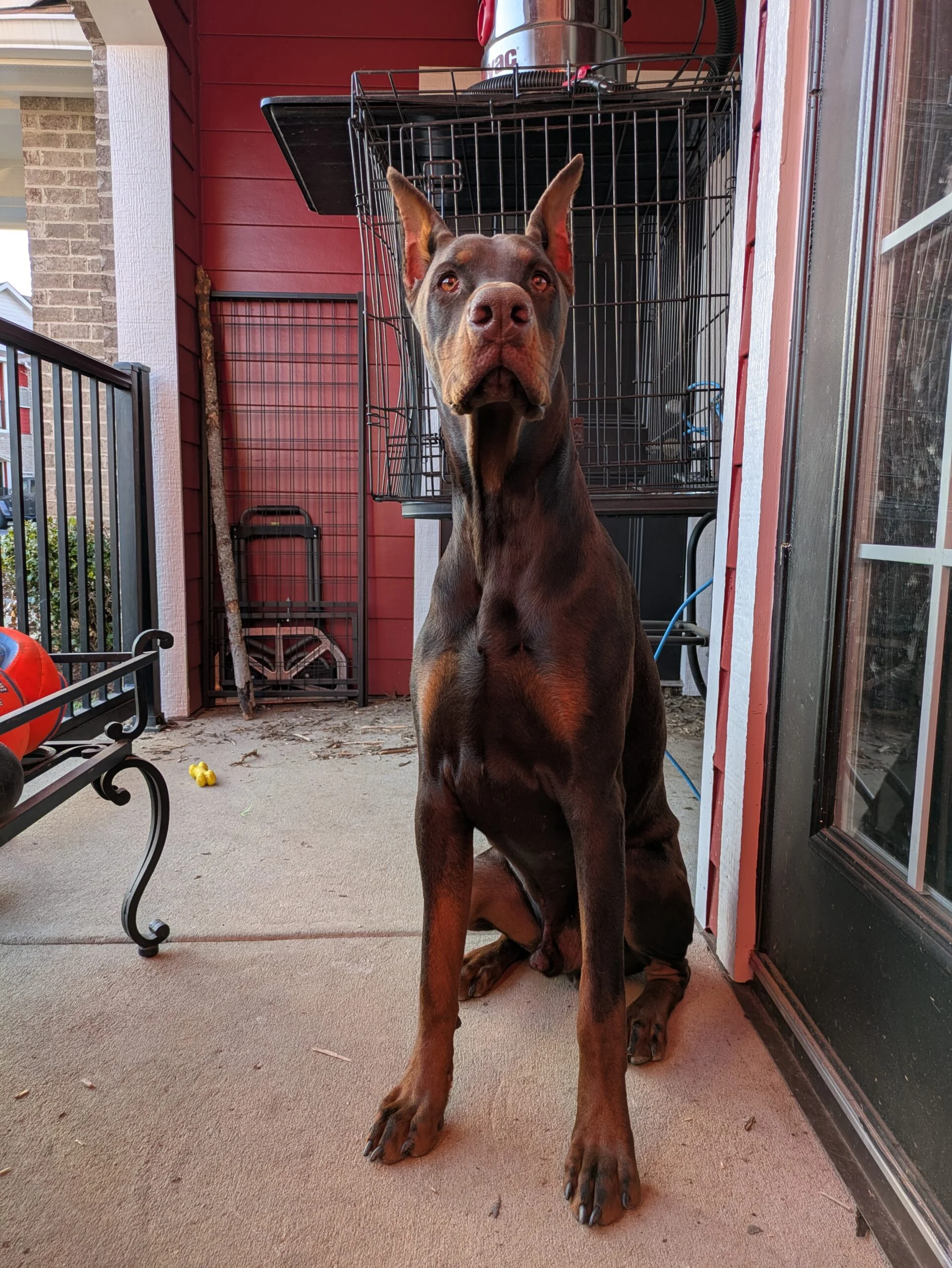 Atlas was born on March 14, 2024. On 05/04/2025 he weighed in at 94 lbs. He eats a diet of eggs, chicken, hamburger, vegetables of all types. His favorites are green peppers and carrots.